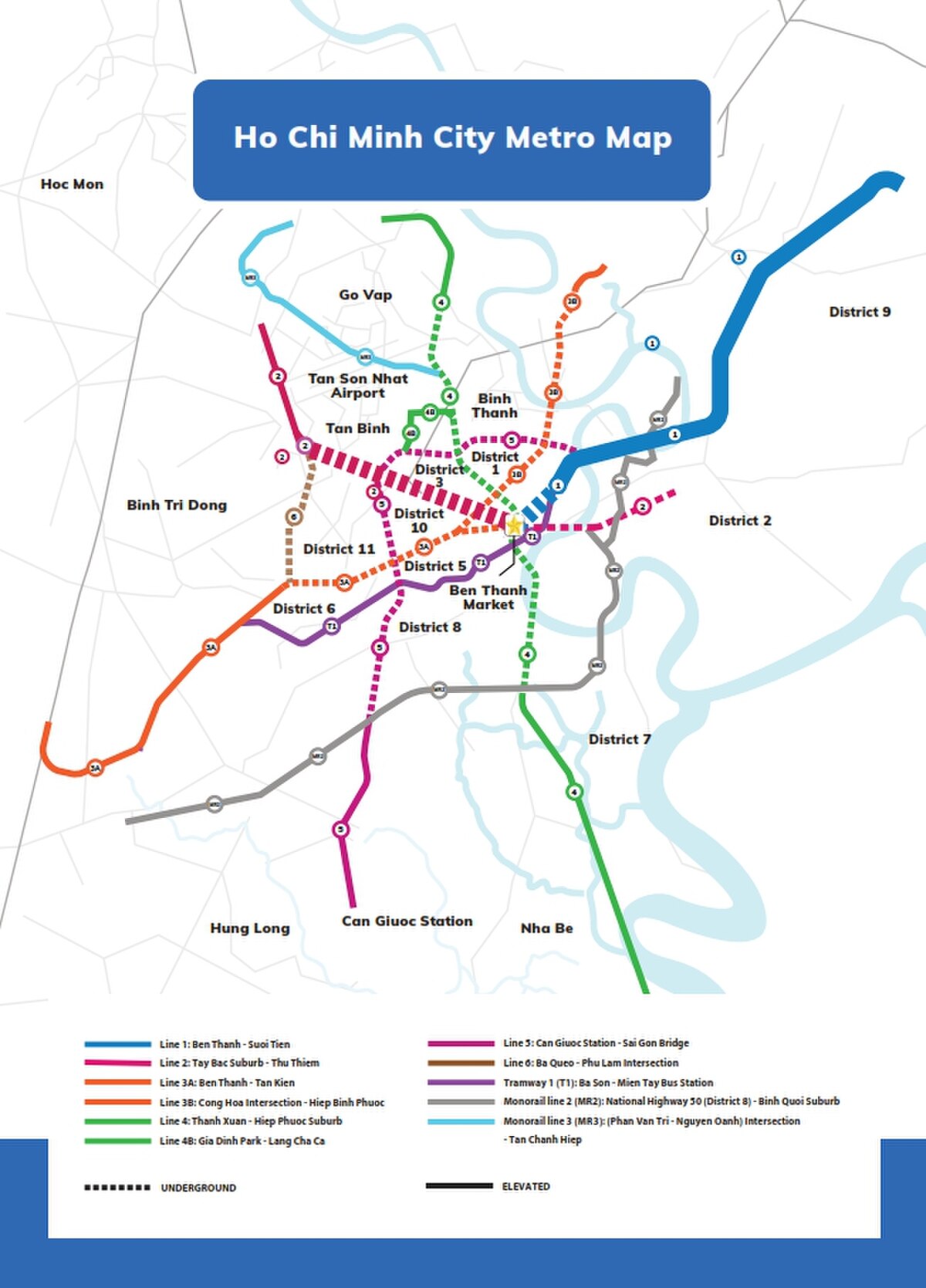 - Tuyến Metro Số 2 (Bến Thành - Tham Lương): 20 km, 11 ga, tổng vốn khoảng 2,1 tỷ USD