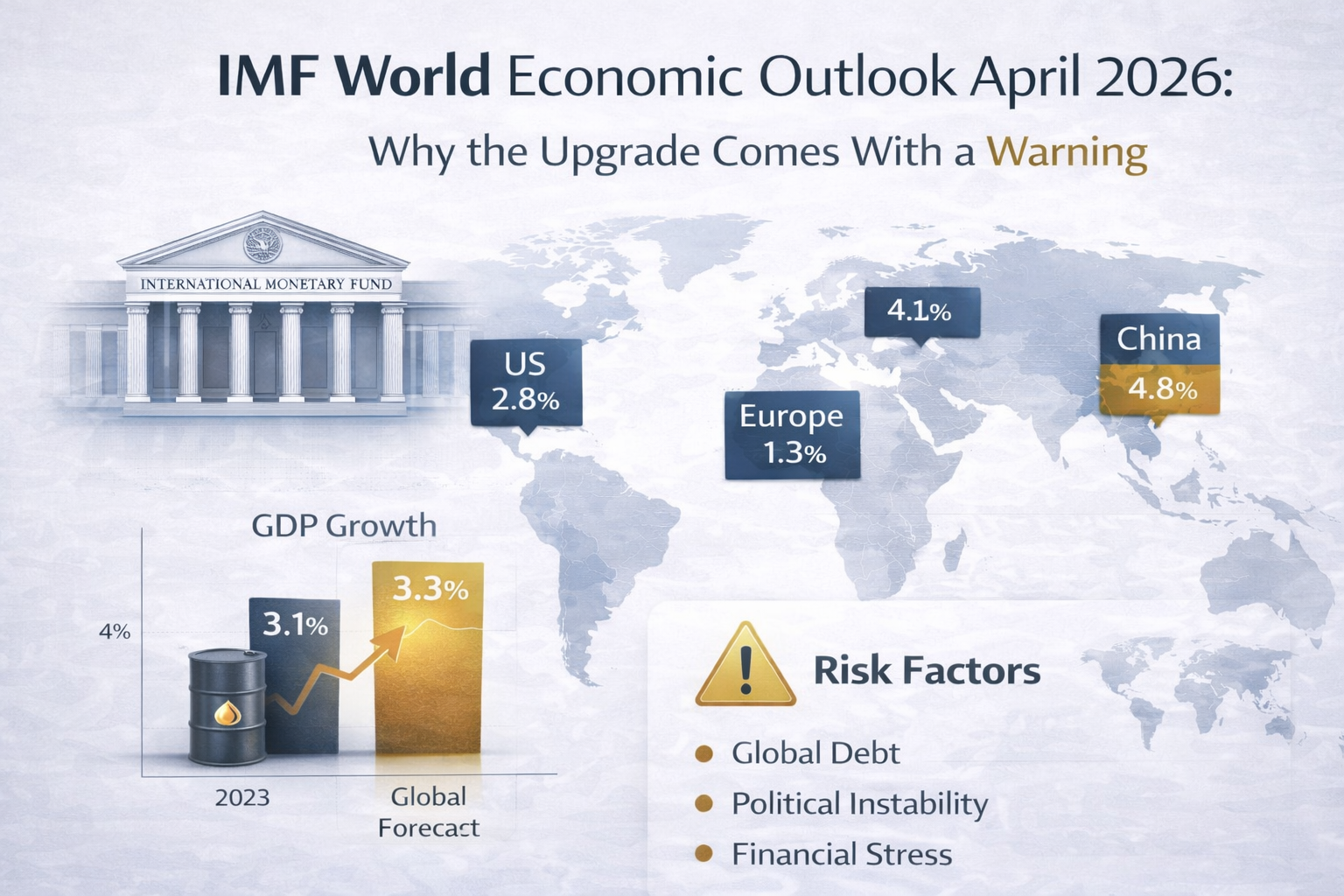 IMF nâng dự báo GDP toàn cầu lên 3,3% nhưng cảnh báo rủi ro từ chiến tranh Iran, lạm phát dai dẳng và chi tiêu quốc phòng tăng vọt.